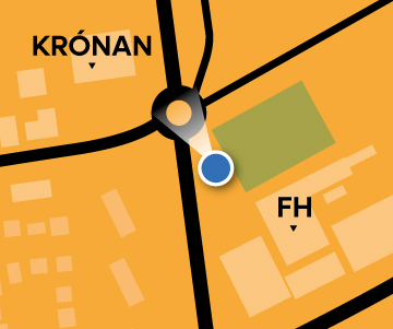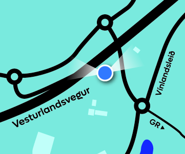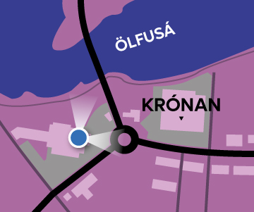 Staðsett við gatnamót Reykjanesbrautar og Fjarðarhrauns.