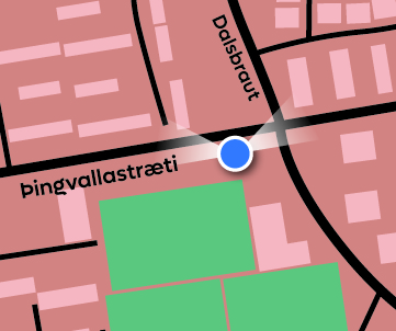 Staðsettur við heimili KA á Akureyri, mjög sýnilegur vegfarendum á Þingvallastræti.