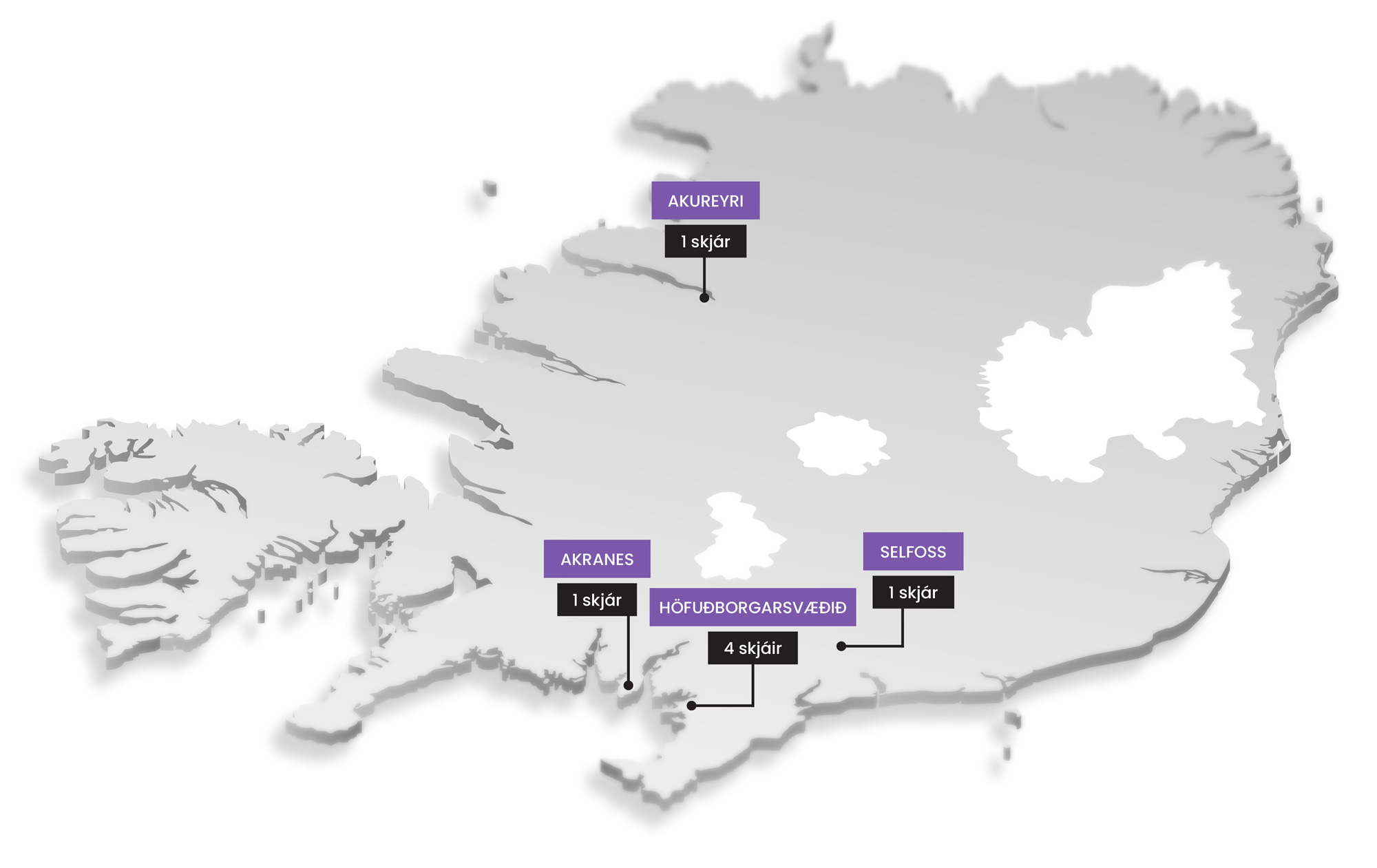 Staðsettur á Smiðjuvöllum 32, sem er fyrsta bygging sem bílstjóri sér á ferð inn í Akranes.